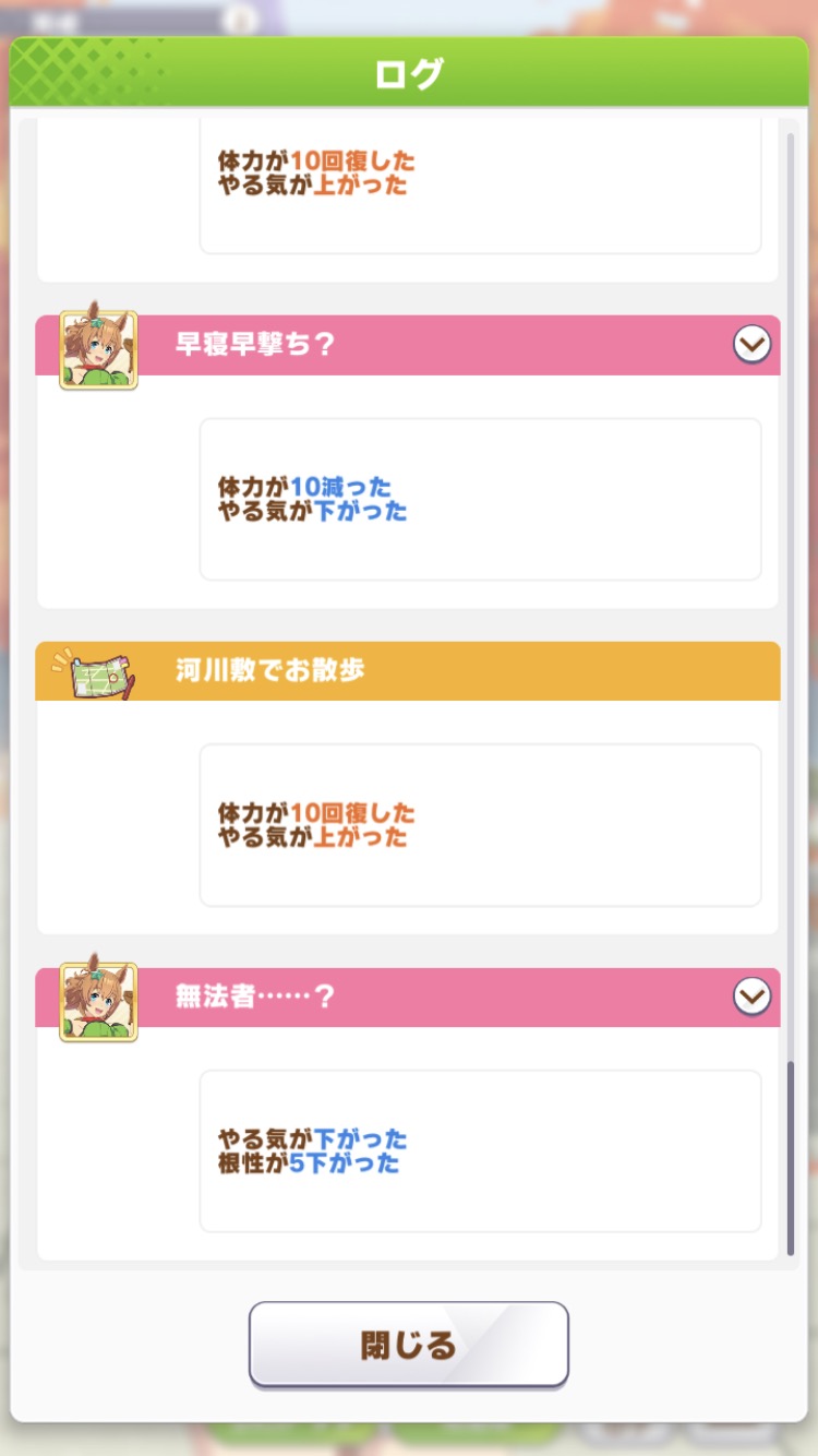 やる気アップイベント起きると打ち消し発生(元が絶好調なので実質マイナス)するよね