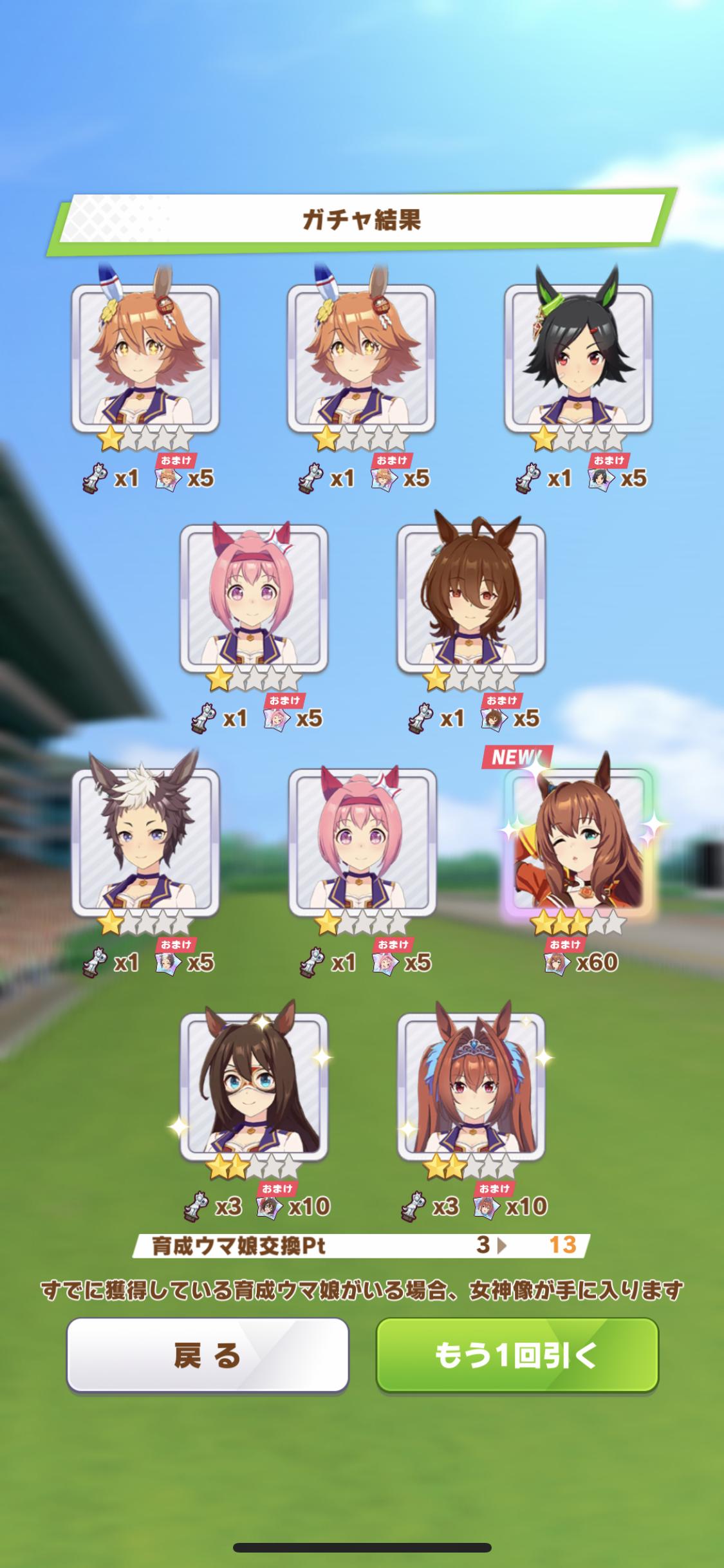 ゴルシチ欲しさに5枚全部使ったぞ